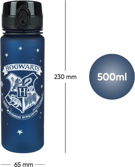 Pokažite svoju ljubav prema svijetu Harryja Pottera i ostanite hidratizirani tijekom cijelog dana. Ova lagana i izdržljiva boca od sigurnog tritana idealna je za školu, trening i izlete. Flip poklopac s osiguračem sprječava neželjeno otvaranje u ruksaku, a zahvaljujući praktičnoj trakici lako je ponesete kamo god idete.
