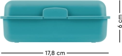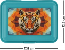 Tirkizna plastična kutija s šarenom grafikom tigra na poklopcu dodaje stil svakom obroku.