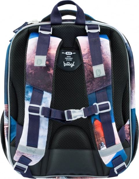Lagana školska aktovka za prvašiće i mlađe školarce s motivom svemirske rakete. Ima učvršćeno tijelo za maksimalnu zaštitu, dvokomorni sustav s organizatorom i karabinom za ključeve te ergonomski leđni sustav AIR ERGO ADJUSTABLE SYSTEM s potpuno podesivim naramenicama. Čvrsto dno, reflektirajući elementi i vodootporan materijal osiguravaju sigurnost i izdržljivost svaki dan. Teži samo 1 000 g i nudi 23 l prostora.