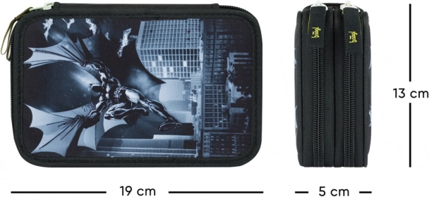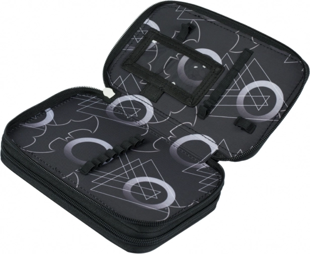 Unutarnje gumice su čvrste i elastične, pa sigurno drže i deblje trokutaste bojice, flomastere ili markere. Dio opreme je i mali džepić za kovanice, gumice ili druge sitnice. Izdržljiv tekstilni materijal i kvalitetni patentni zatvarači osiguravaju dug vijek, a atraktivan izgled s motivom BATMAN razveselit će svakog obožavatelja.