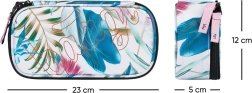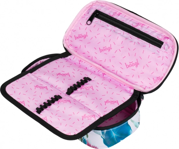 Omiljena pernica BAAGL u modernom dizajnu tropskog lišća idealan je izbor za školu i izvannastavne aktivnosti. Zahvaljujući čvrstoj tekstilnoj izradi i kvalitetnom patentnom zatvaraču, sve potrepštine za pisanje ostaju sigurne i pregledno organizirane. Unutarnja preklopna pregrada s elastičnim petljama olakšava brz pristup olovkama i kemijskim olovkama, dok džep na patentni zatvarač prima sitnice poput gumica ili šiljila.