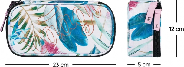 Dio unutrašnjosti je i prozirni džep za raspored sati kako biste uvijek imali pregled školskog dana pri ruci. Pernica se isporučuje bez punjenja, pa je možete napuniti točno prema svojim potrebama. Izdržljiv materijal i bezvremenski izgled s tropskim printom savršeni su za svakodnevnu upotrebu.