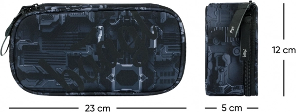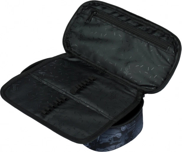 Praktični školski etui pernica Baagl Technic nudi čvrstu izradu, preklopnu unutarnju pregradu za pregledno spremanje pribora, džep na patentni zatvarač i džep za raspored. Isporučuje se bez punjenja, pa ga možete napuniti točno prema svojim potrebama.