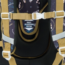 Pomični leđni sustav i ergonomski oblikovana leđa osiguravaju ispravnu prilagodbu visini i građi djeteta. Udobnost upotpunjuju podesivi rameni, prsni i bočni kompresijski remeni.