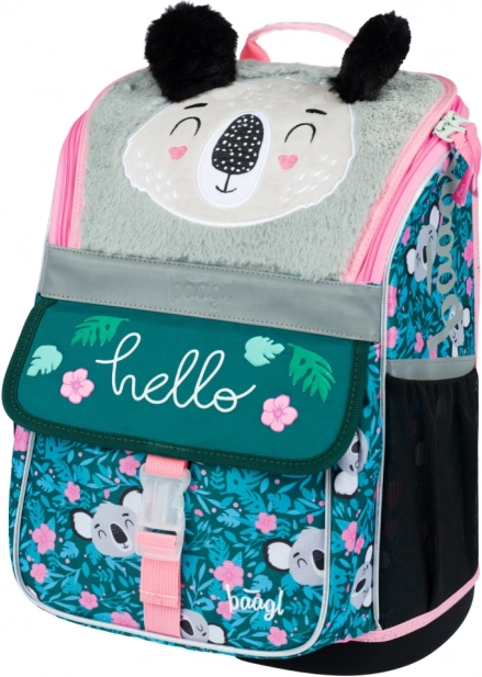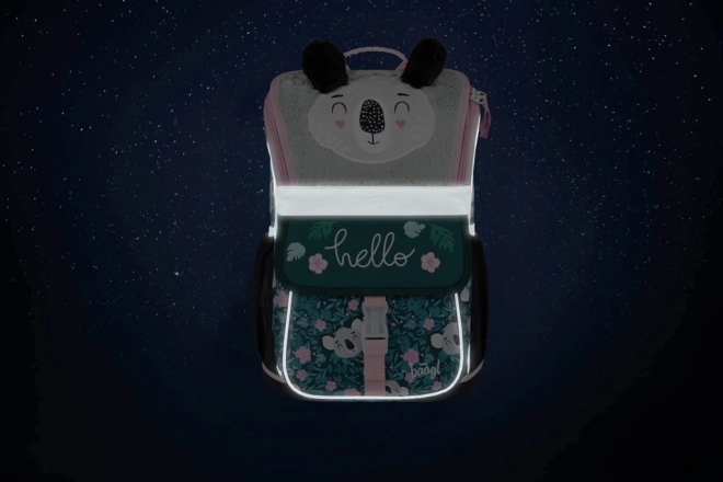 Čvrsti vodootporni materijali i stabilno dno održavaju aktovku u formi i u uspravnom položaju. Reflektirajući elementi povećavaju vidljivost djeteta, razigran dizajn s koalom i pahuljastim privjeskom razveselit će svaki školski dan.