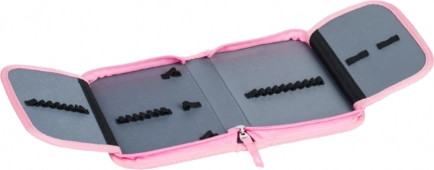 Unutra se nalaze gumene petlje, džepići i pretinac na patent za pregledno raspoređivanje pribora za pisanje.