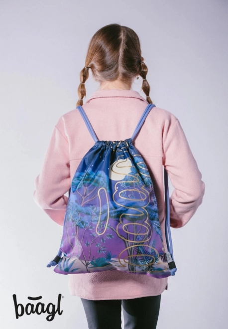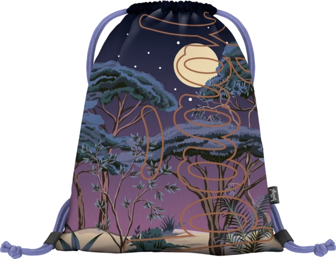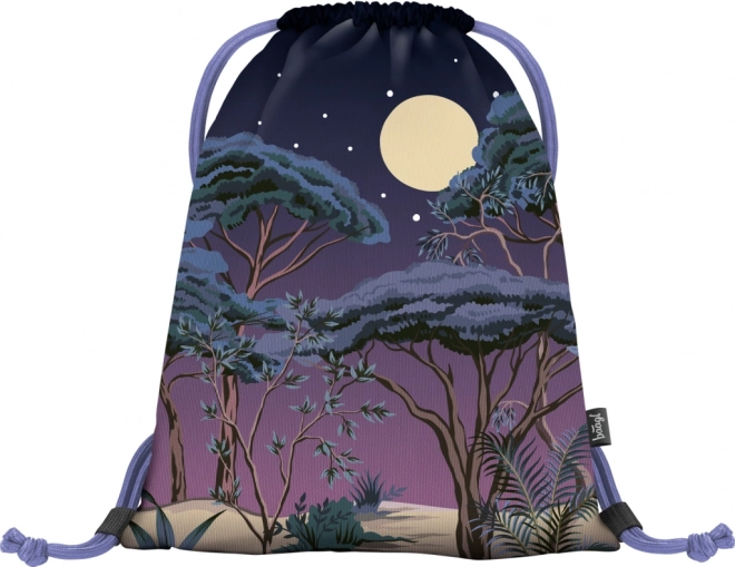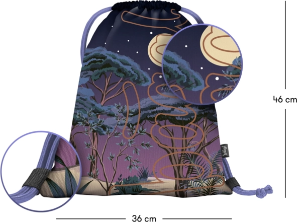 Torba je ukrašena noćnim dizajnom s šumom, mjesecom i zvijezdama, idealna za korištenje na otvorenom ili u slobodno vrijeme.