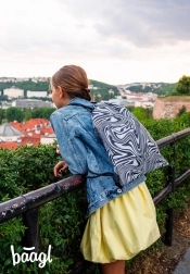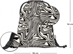 Ova praktična torba izrađena je od čvrstog perivog materijala i njezin elegantni crno-bijeli psihodelični dizajn privlači pažnju svih. Zatvaranje je riješeno pomoću čvrstih traka koje istovremeno služe kao udobni remeni za nošenje na leđima.