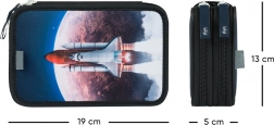 Dvokatna pernica Space Shuttle nudi pojačana leđa za lako rukovanje i kvalitetne gumice koje mogu smjestiti i debele bojice. Sadrži i mali džepić za sitnice.