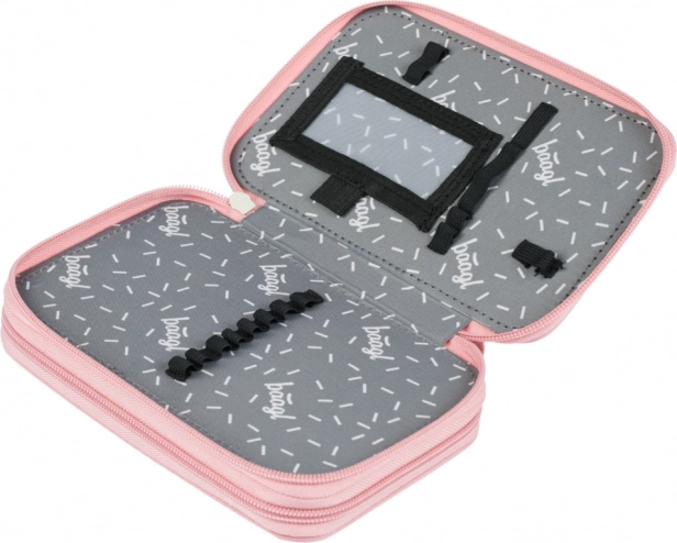 Pernica s pojačanim leđima za lakše rukovanje i gumicama za držanje svih bojica. Pernica je dizajnirana tako da izdrži naporne školske dane.