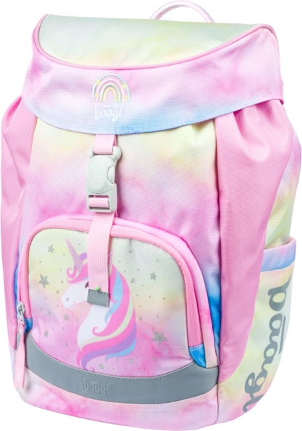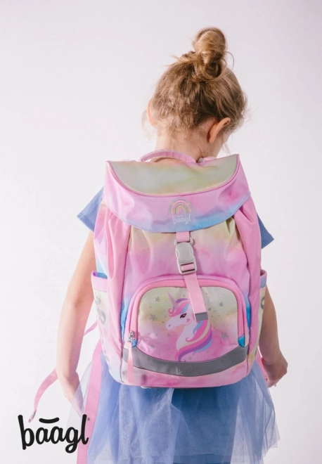 Baagl Airy Rainbow Unicorn je izvrsni suputnik za svakodnevne školske avanture. Ovaj ruksak nudi ergonomski oblikovana leđa s AIRFLOW ERGO SUSTAVOM koji osigurava prozračnost i udobnost. Zahvaljujući potpuno podesivim naramenicama prilagođava se svakom tijelu, a prsni i bočni remeni osiguravaju ravnomjerno raspoređivanje tereta.