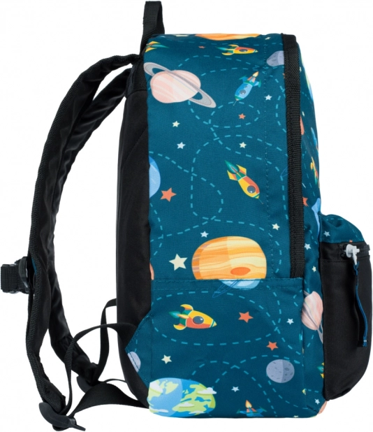 Privlačan motiv planeta i raketa djeca će obožavati. Glavna komora prima užinu i omiljenu igračku, prednji džep s patentnim zatvaračem idealan je za sitnice, maramice ili ključeve.