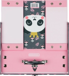Metalna ručka ugodno leži u ruci, a klasična kopča sigurno drži sadržaj unutra. Kutijica je izvrsna za likovni pribor, bilježnice, sitne igračke ili putne dragocjenosti. Sladak motiv pande i ružičasti tonovi čine je omiljenim dodatkom za školu i putovanja.