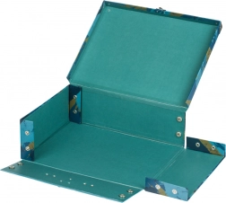 • Sklopiva kutija od čvrstog laminiranog papira s ojačanim metalnim kutovima.
