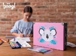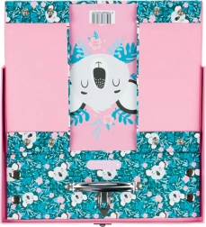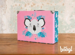 Sklopiva školska torbica s nježnim motivom koale idealna je za likovni pribor, bilježnice, igračke i sitnice za putovanja. Elegantni metalni detalji i okovani kutovi osiguravaju dug vijek trajanja, dok lagana konstrukcija od čvrstog laminiranog papira olakšava svakodnevno nošenje.