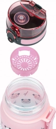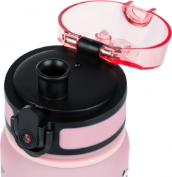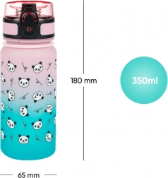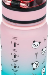 Certificirani tritan ne upija mirise, zdravstveno je ispravan (bez BPA, PVC-a i ftalata) i otporan na udarce. Šareni ružičasto–tirkizni prijelaz s veselim pandama motivira na redovito pijenje, a zahvaljujući trakici boca je uvijek pri ruci.