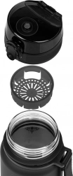 Stilna tritanska boca zapremnine 350 ml idealna je za školu, izlete i sport. Nudi zaključivi poklopac protiv curenja, praktično remenče za nošenje i cjedilo za aromatizirana pića. Iz kvalitetnog BPA-free tritana bez mirisa, prikladna i za vruće napitke.