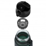 Ova lagana i izdržljiva boca od certificiranog tritana čuva vaše napitke ukusnima i bez neželjenog plastičnog mirisa. Zahvaljujući flip poklopcu sa sigurnosnom bravom ne procuri ni kap, stoga je odličan izbor za školsku torbu i planinarenje. Integrirano cjedilo omogućuje pripremu voćnih limunada ili čaja; materijal je prikladan i za tople napitke.