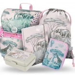 Set BAAGL Safari je idealno rješenje za djecu koja trebaju stilski i funkcionalni školski pribor. Ergonomična torba izrađena je s obzirom na zdravlje dječjih leđa, nudi podesivi sustav za leđa i ergonomski oblikovana leđa. Torba ima malu težinu i zapreminu od 19 l, što osigurava dovoljno mjesta za sve udžbenike.