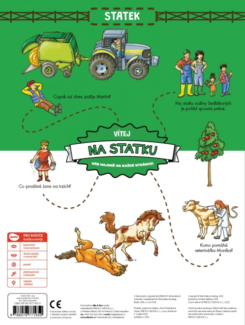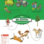 Ova velika slikovnica poziva djecu na cjelodnevni izlet na farmu obitelji Sedlák. Razgledat će staje, dvorište i polja, upoznati domaće životinje te vidjeti kako se radi sa strojevima i kako izgleda užurban dan na gospodarstvu. Svaka dvostruka stranica oživljava detaljnim ilustracijama i malim pričama likova koji se pojavljuju kroz cijelu knjigu.