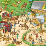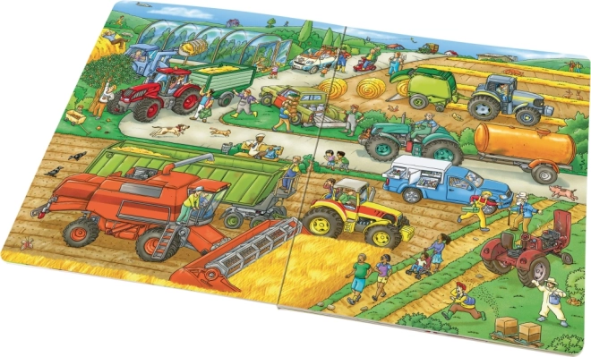 Otkrijte čaroliju života na farmi uz ovu veliku slikovnicu koja djecu vodi kroz sve kutke gospodarstva. Čekaju ih životinje, poljoprivredni strojevi u akciji, ljudi raznih zanimanja i zabavne scene. Na svakoj dvostrukoj stranici mogu tražiti likove i pratiti njihove priče – razigrano učenje, promatranje i koncentracija u jednom.
