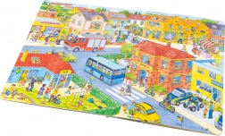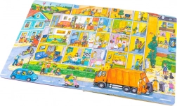 Ova velikog formata knjiga idealna je za zajedničko čitanje i prepričavanje. Djeca će upoznati što se u gradu događa od jutra do večeri – od posla čistača ulica i kupovine, preko vrtića, gradilišta, vatrogasaca i policije, pa do popodnevne zabave u parku te izleta do jezera ili na farmu. Svaka je stranica puna poticaja za razgovor i traženje detalja.