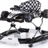 Zahvaljujući trima visinskim položajima sjedala hodalica raste s djetetom. Prednji kotači s okretanjem od 360° olakšavaju manevriranje, a šest graničnika štiti od prevrtanja i pada niz stepenice. Odvojivi pult može se pretvoriti u samostalnu guralicu–autić – idealno za razvoj grube motorike.