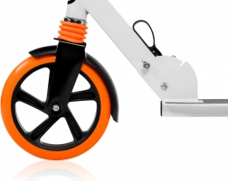Gradski romobil Lionelo Luca White Orange objedinjuje laganu aluminijsku konstrukciju, velike PU kotače 200 mm, 3-stupanjska podesiva upravljača i nosivost do 100 kg. Nudi glatku vožnju zahvaljujući ABEC-7 ležajevima, sigurnu stražnju kočnicu na blatobranu, protukliznu platformu te praktično sklapanje s remenom za nošenje i nosačem/stopicom.
