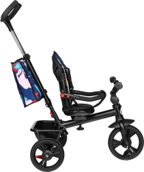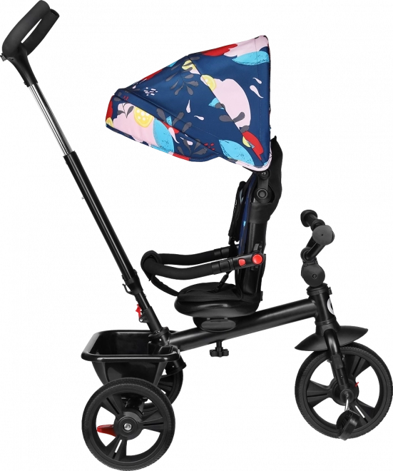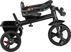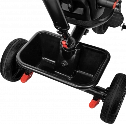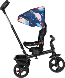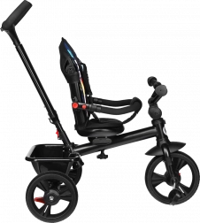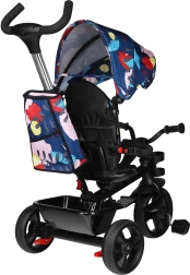 Za maksimalnu sigurnost trokolica je opremljena 3-točkovnim pojasevima, zaštitnom prečkom, reflektirajućim elementima i dvostrukom kočnicom na stražnjim kotačima. Roditelji će cijeniti po visini podesivu ručku, jednostavno sklapanje u kompaktne dimenzije i praktičnu opremu – košaricu, torbu i držač za bocu.