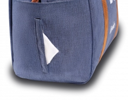 • Izvana: praktičan džep na patentni zatvarač, 2 bočna džepa – od kojih je jedan namjenski za vlažne maramice s izravnim pristupom.