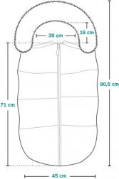 Praktična i elegantna vreća za hladne dane koja se zahvaljujući univerzalnim otvorima na čičak prilagođava kolicima s 2-, 3- i 5-točkovnim pojasevima. Vanjski vodootporni materijal štiti od vjetra i vlage, dok mekana unutarnja flis podstava pruža maksimalnu udobnost. Dvostruki patentni zatvarač omogućuje otvaranje po sredini i sa strane – idealno za brz pristup nožicama.