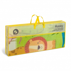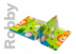 Podloga za igru Lionelo Robby nudi velikodušan prostor 180 × 200 × 1 cm za sigurnu igru mališana i starije djece. Obostrani tisak razvija maštu – s jedne strane životinje sa Safarija, s druge karta grada za autiće i priče s ulica. Zahvaljujući izdržljivoj XPE pjeni podloga ublažava udarce, a pritom je dovoljno čvrsta za prve pokušaje uspravljanja i puzanja.