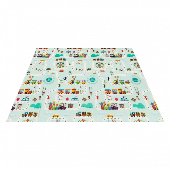 Jedna podloga, dvostruka zabava. Šarena safari životinjica i interaktivna karta grada potiču pripovijedanje priča i razvoj mašte.
