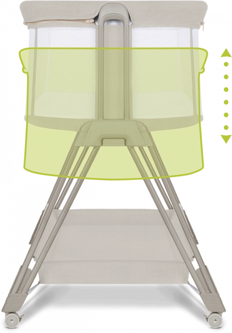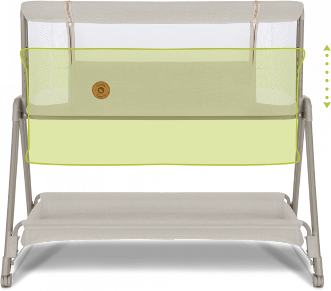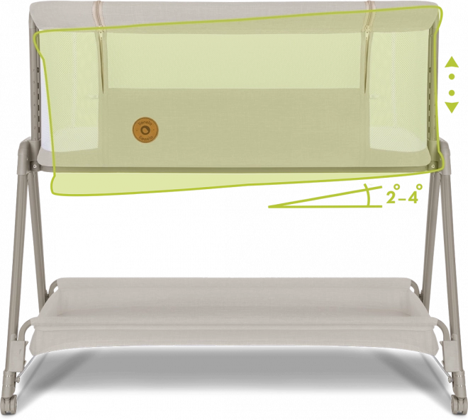 Prozračne mrežaste stijenke potiču cirkulaciju zraka i vizualni kontakt, a navlaku lako skinete i operete za maksimalnu higijenu. Sa 7 razina visine krevetić jednostavno uskladite s visinom vašeg kreveta; kod prehlade ili refluksa madrac se može postaviti u blagi nagib za veći komfor bebe.