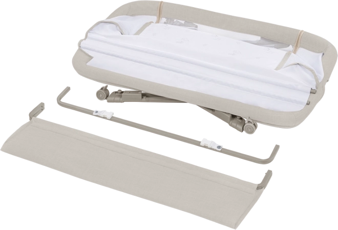 Podesite Lunu u trenu: pričvrstite je uz krevet pomoću remena i iskoristite preklopnu bočnicu ili je koristite kao samostojeći krevetić.