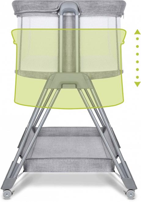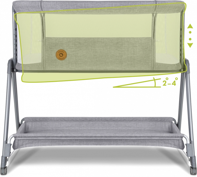 Madrac od kvalitetne pjene pruža pravilnu potporu rastućoj kralježnici. Praktična mogućnost nagiba pomaže kod prehlade i refluksa. Visinu ležaja prilagođavate u 7 koraka tako da bude u ravnini s krevetom roditelja. Zahvaljujući pričvrsnim remenima priključnu posteljicu brzo i sigurno spajate s krevetom za odrasle. Odvojive tkanine, uključujući navlaku madraca, možete jednostavno skinuti i oprati, pa ćete održati higijensko okruženje za spavanje.