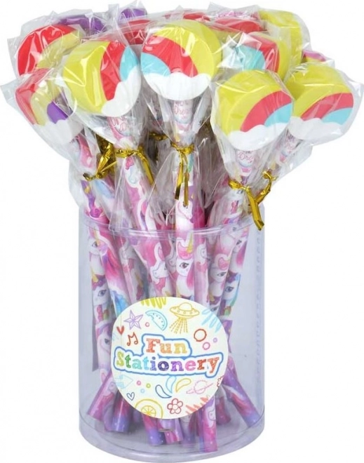 Ova stilska grafitna olovka s motivom jednoroga idealna je za pisanje i crtanje kod kuće, u školi i na putu. Duginom gumica na kraju pouzdano ispravlja sitne pogreške, dok šarena dekoracija svakom pisanju daje poseban štih.