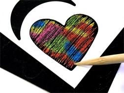 Ispod crnog sloja skrivaju se žive boje koje nakon struganja stvaraju efektne crteže i dekoracije.