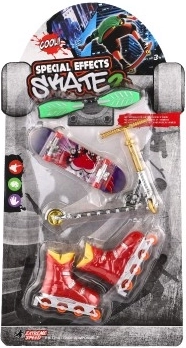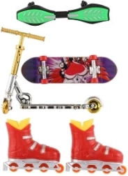 Otkrijte beskrajnu zabavu sa setom za prste za male zaljubljenike u ulične sportove. U pakiranju ćete pronaći mini skateboard, waveboard, in-line role i romobil za treniranje trikova i maštovitu igru. Idealno za razvoj fine motorike i koordinacije, prikladno od 3 godine. Trikovi za prste, miks kolor varijanti, izdržljiva plastična izrada i kompaktne dimenzije za igru kod kuće i na putu.