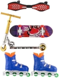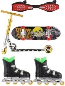 Ovaj set za prste donosi četiri popularna urbana sporta u mini izdanju: skateboard, waveboard, in-line role i romobil. Djeca mogu isprobavati nove trikove, stvarati vlastite staze i razvijati kreativnost i spretnost. Zahvaljujući kompaktnih dimenzijama set lako stane u ruksak i savršen je za zabavu bilo gdje.