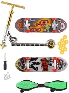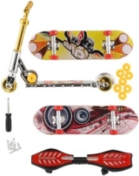Ovaj svestrani set prstnih sportova nudi sve što mali i veliki entuzijasti trebaju za mini freestyle zabavu. U njemu su 2 vijčana skateboarda, waveboard i romobil, uključujući kotače, vijke i mini odvijač za jednostavno sastavljanje i prilagodbe.