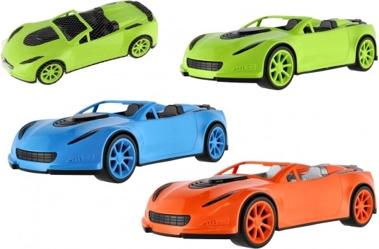 Veliki plastični sportski automobil s otvorenom karoserijom razveselit će male vozače realističnim izgledom i glatkom vožnjom na slobodni hod. Prikladan je i za dječju sobu i za igralište – lagan je, izdržljiv i lako se prenosi zahvaljujući pakiranju u mrežici.
