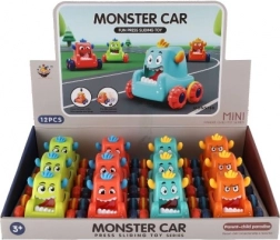 Zahvaljujući kompaktnim dimenzijama 9 × 8 cm autić odlično leži i manjoj djeci. Dostupan je mix 4 boje s preslatkim čudovišnim licima koja osvajaju na prvi pogled. Idealan kao mali poklon, za vrtić i za putovanja.