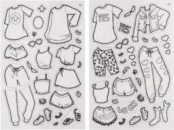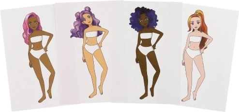 - 8 manekenki, 2 lista šablona odjeće, 12 šarenih ljepljivih folija, dodaci