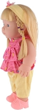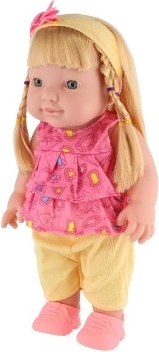 Ova realistična lutka visine 30 cm odličan je izbor za razvoj mašte i socijalnih vještina. Ima čvrsto plastično tijelo, dugu kosu prikladnu za češljanje i odjevena je u vesele, šarene outfite. Ugrađeni zvučni modul aktivira se nakon izvlačenja osigurača smještenog u mehanizmu na leđima.