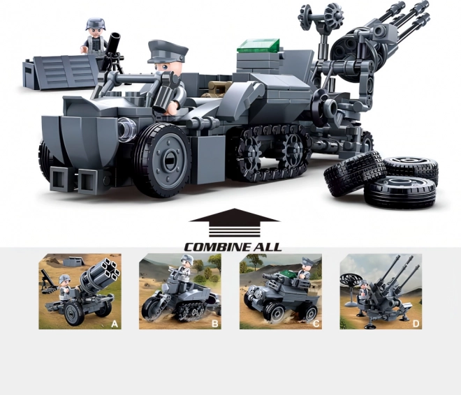 Ovaj set donosi kompletne elemente za stvaranje vojnih scenarija s njemačkom protuzračnom tehnikom. Glavni dijelovi uključuju raketomet, protuzračni top, oklopno vozilo i posebni gusjeničarski motocikl. Kombiniranjem možete stvoriti veliki model mobilne jurišne jedinice.