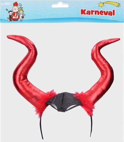 Ovaj rajf s vražjim rogovima dodaje vašem kostimu vraga jedinstven izgled. Izrađeno od sjajnog tekstilnog materijala s perjem detaljima, idealno za karnevalske proslave.