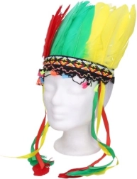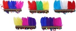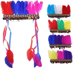 Traka za glavu ukrašena je šarenim perima i ukrasnim vrpcama, što je čini idealnim dodatkom za kostime.