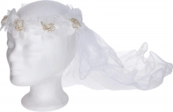 Ova stilska traka za kosu s velom u trenu pretvara malu princezu, vilu ili mladenku. Nježni, proziran til lijepo se njiše, a cvjetni detalji dodatku daju romantičan izgled. Zahvaljujući laganom materijalu i elastičnom pričvršćivanju, udobna je za cjelodnevno nošenje.