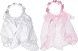 Odaberite među različitim bojama (bijela, ružičasta, plava) i uskladite kostim prema raspoloženju. Veo duljine oko 55 cm diskretno pada niz leđa i stvara elegantan, tečan efekt na fotografijama i pri pokretu.